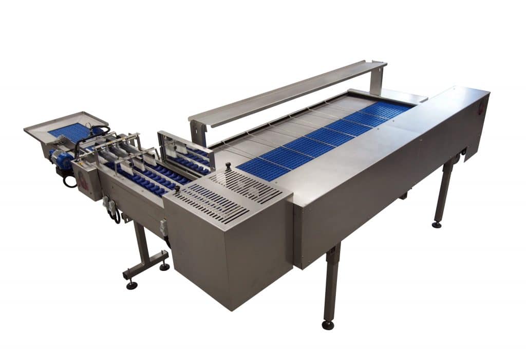 - In-line feeding conveyor for direct supply from production unit, complete with automatic egg pressure control.