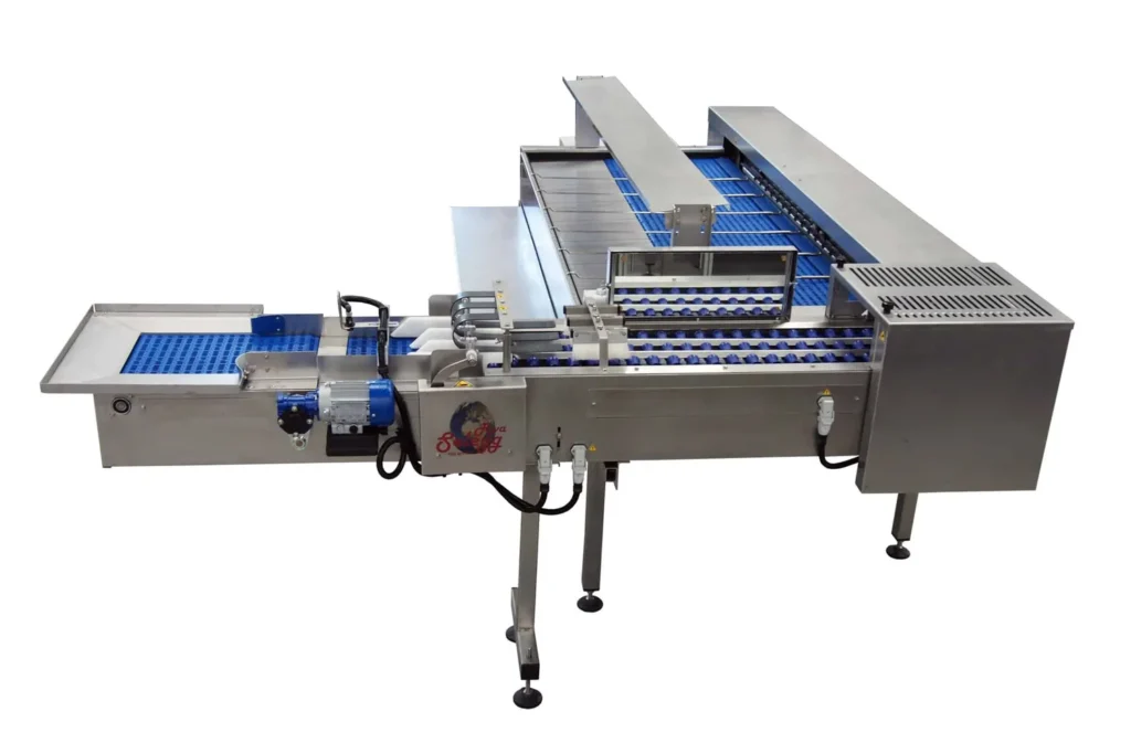 Entirely made of stainless steel Riva Selegg's semi-automatic grading machine up to 9,000 eggs per hour.