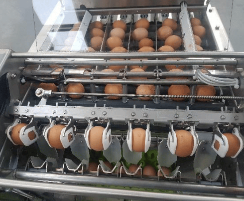 position for convenient stacking and quality control. - Positive orientation with turn bars and grippers gives very gently egg handling and high
